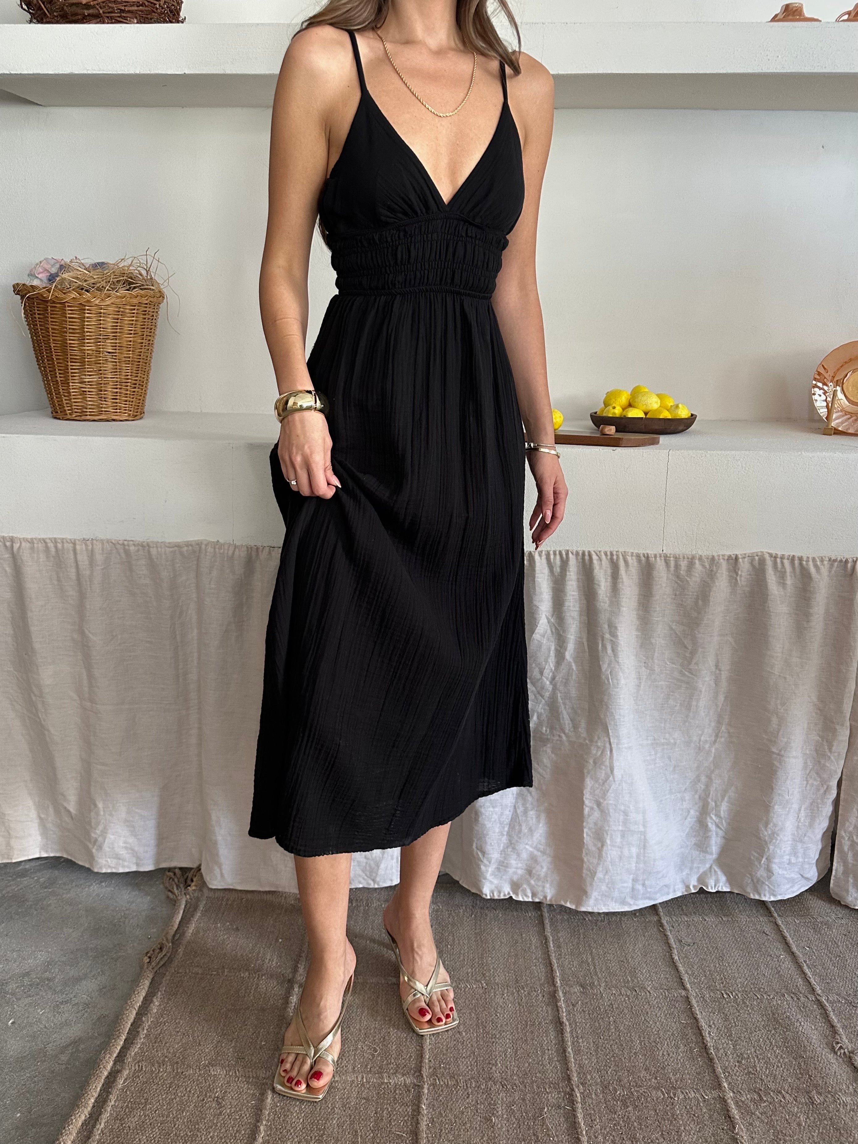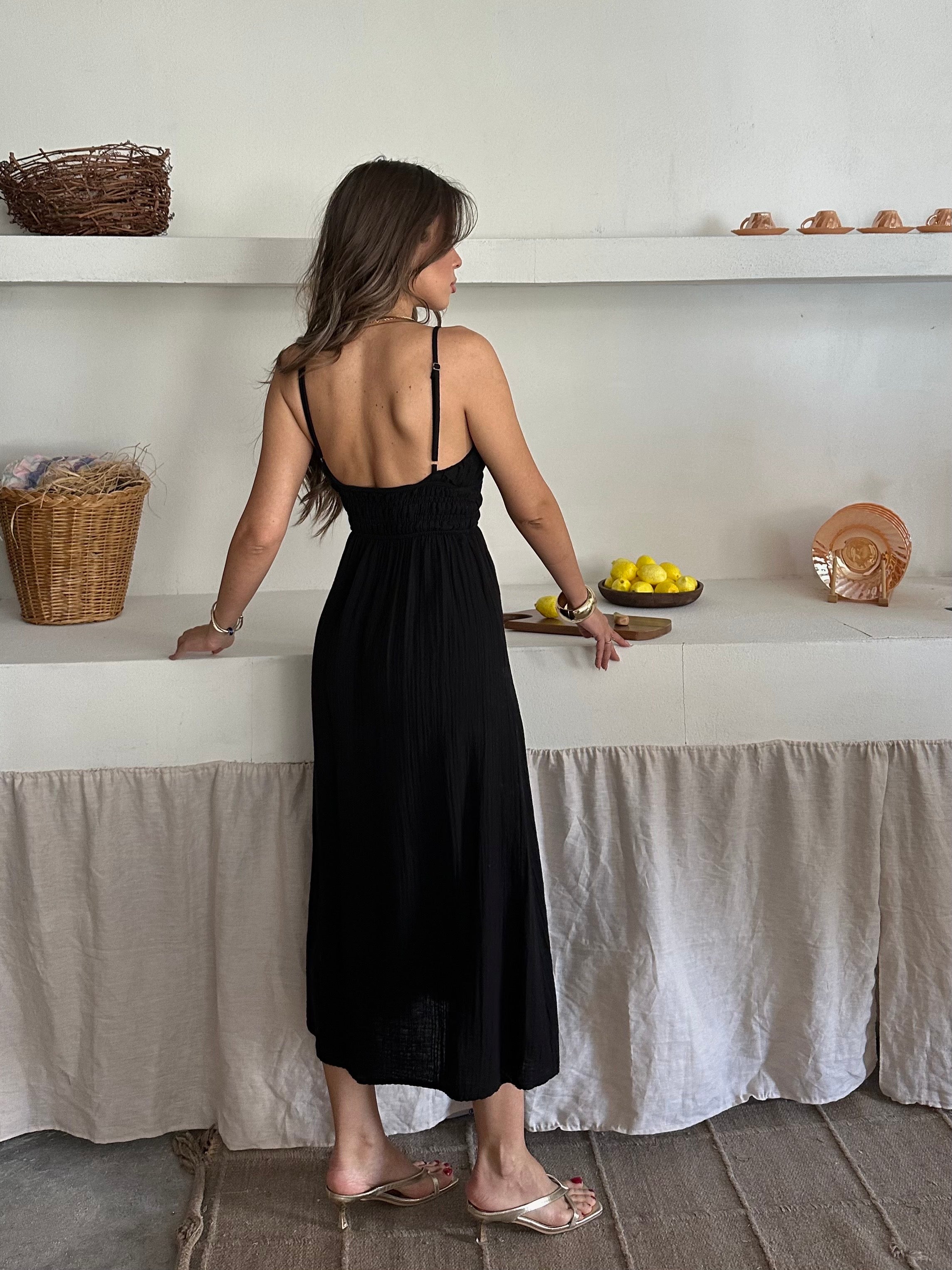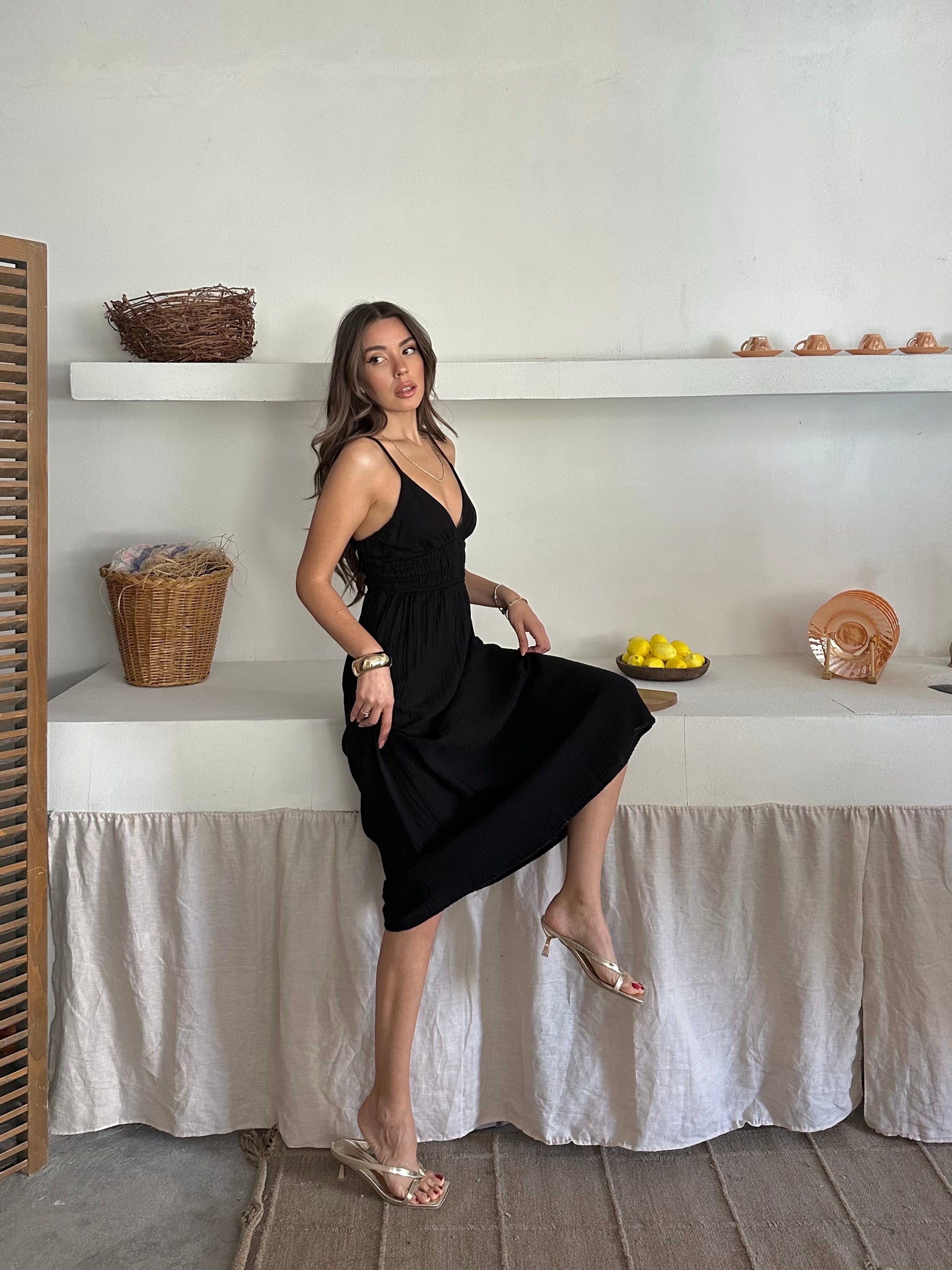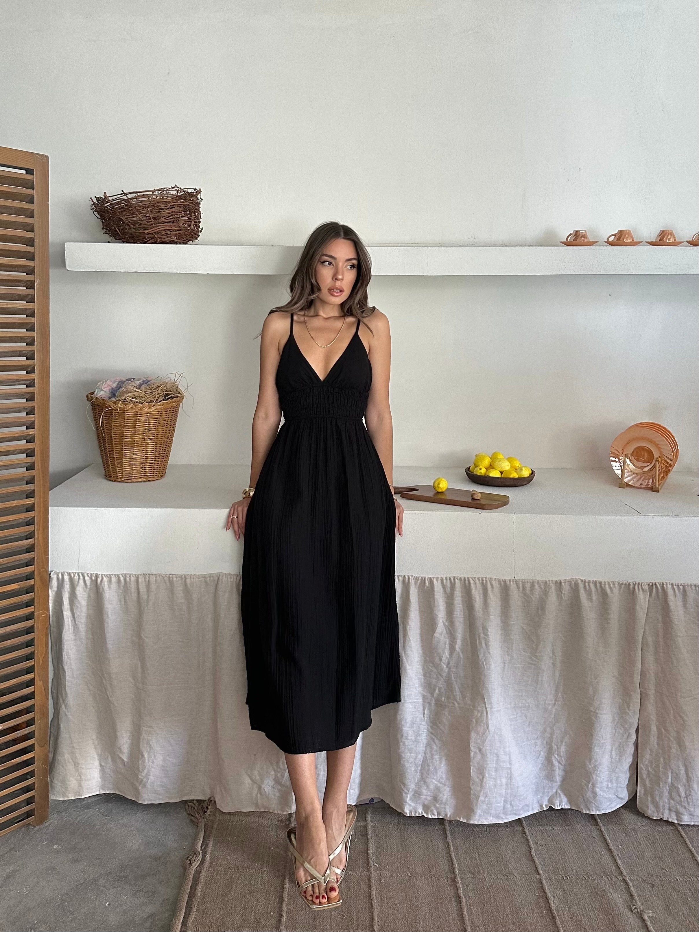 Evelina İp Askılı Müslin Kumaş Elbise Siyah