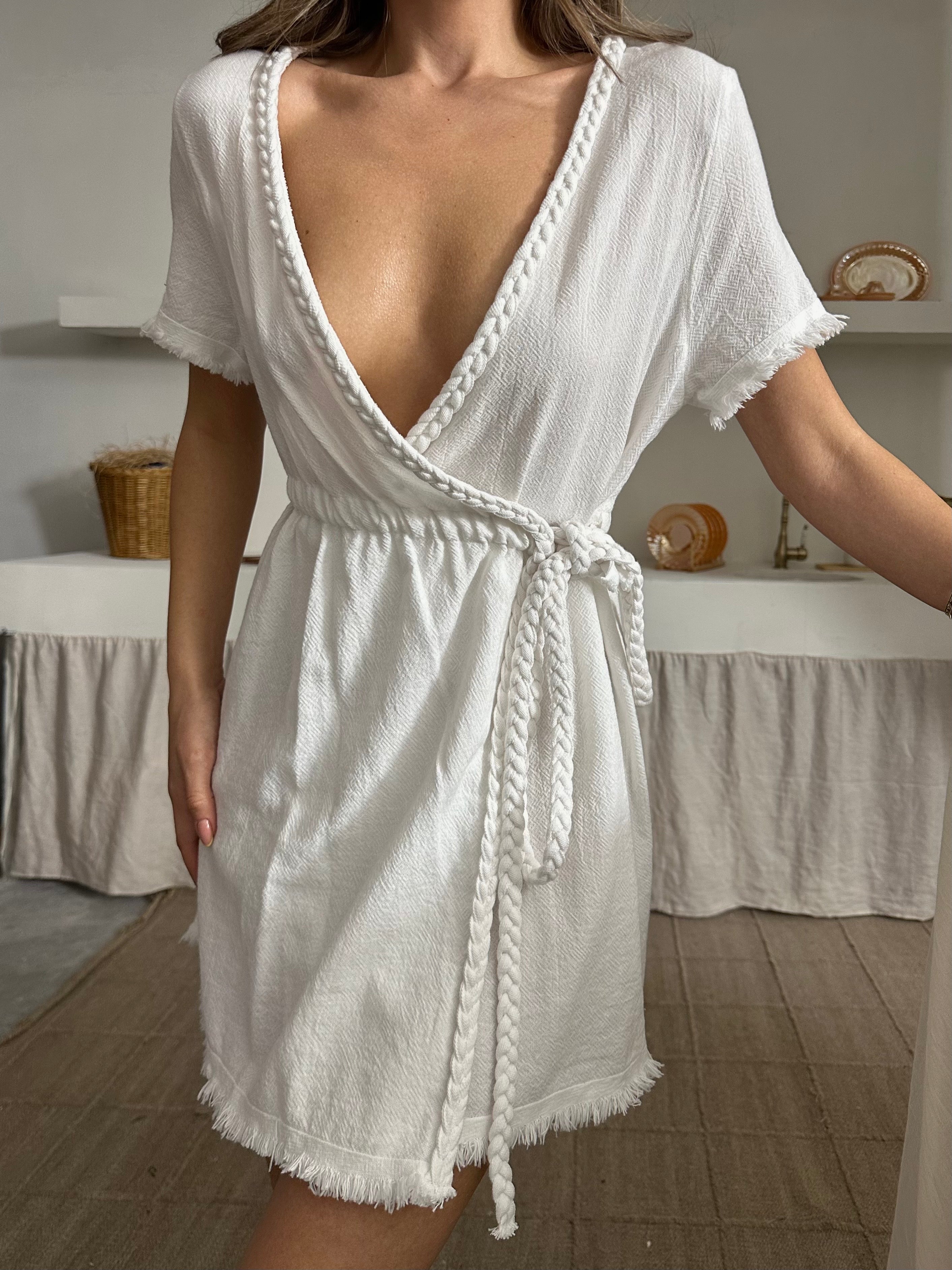 • Elina Bel Bağlamalı Müslin Kumaş Elbise Beyaz
