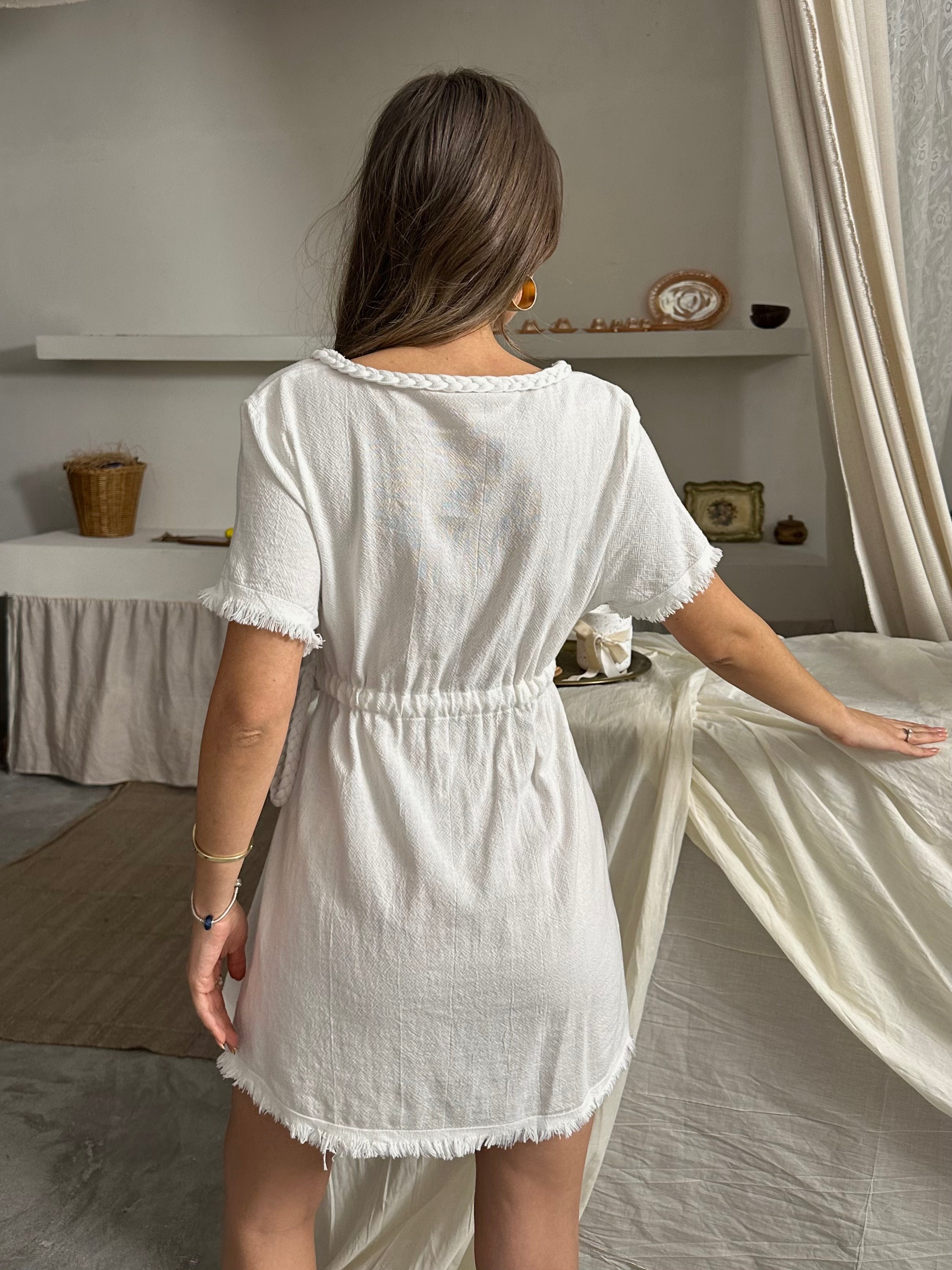 Elina Bel Bağlamalı Müslin Kumaş Elbise Beyaz