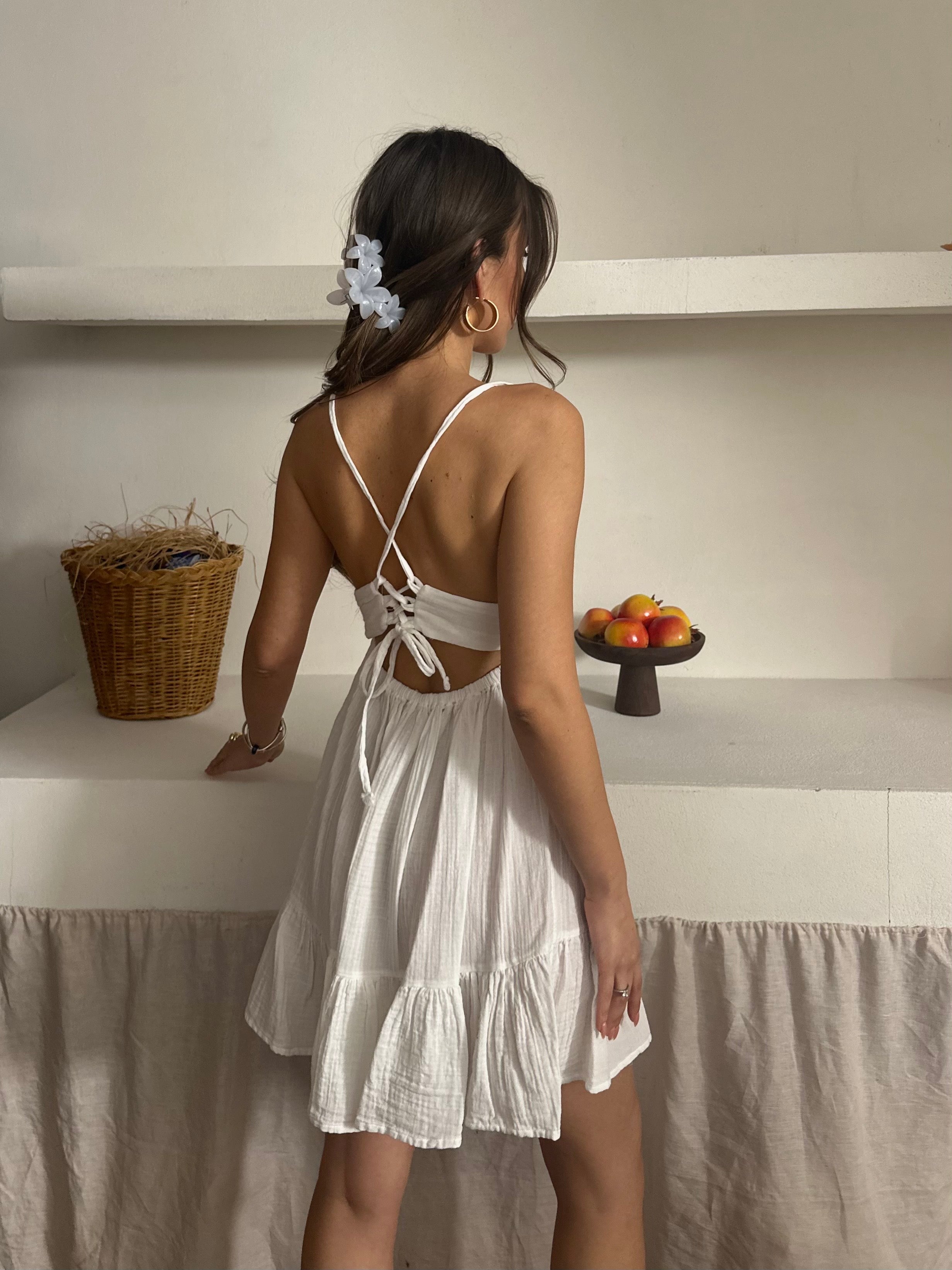 Alva İp Askılı Müslin Kumaş Elbise Beyaz