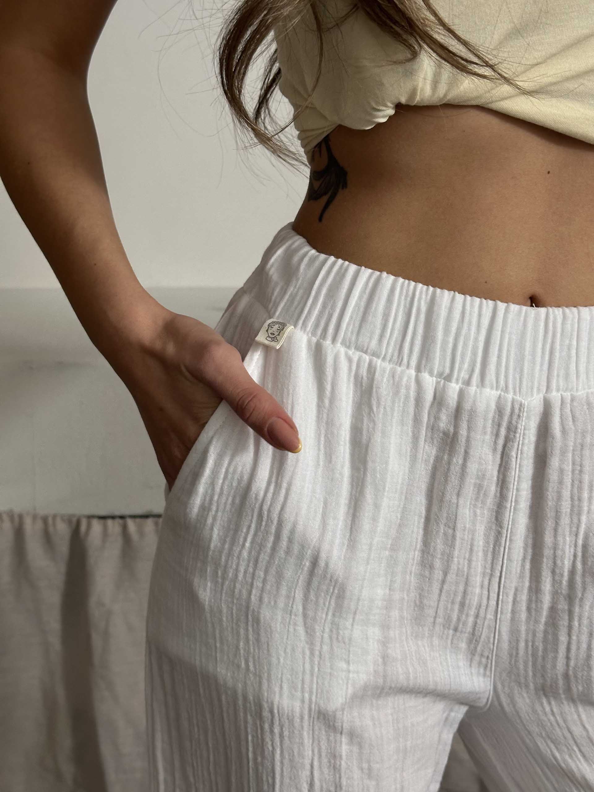• Talia Organik Müslin Kumaş Pantolon Beyaz
