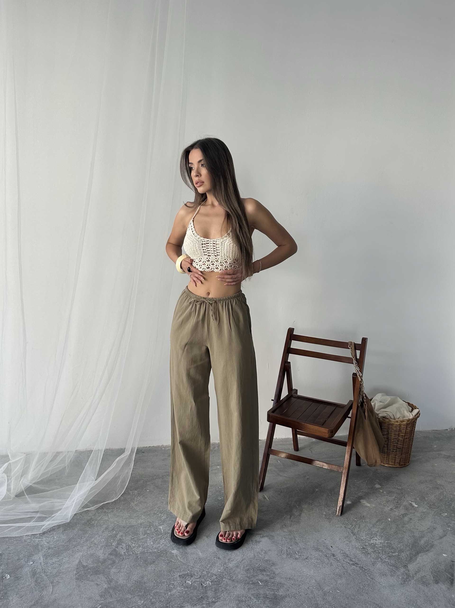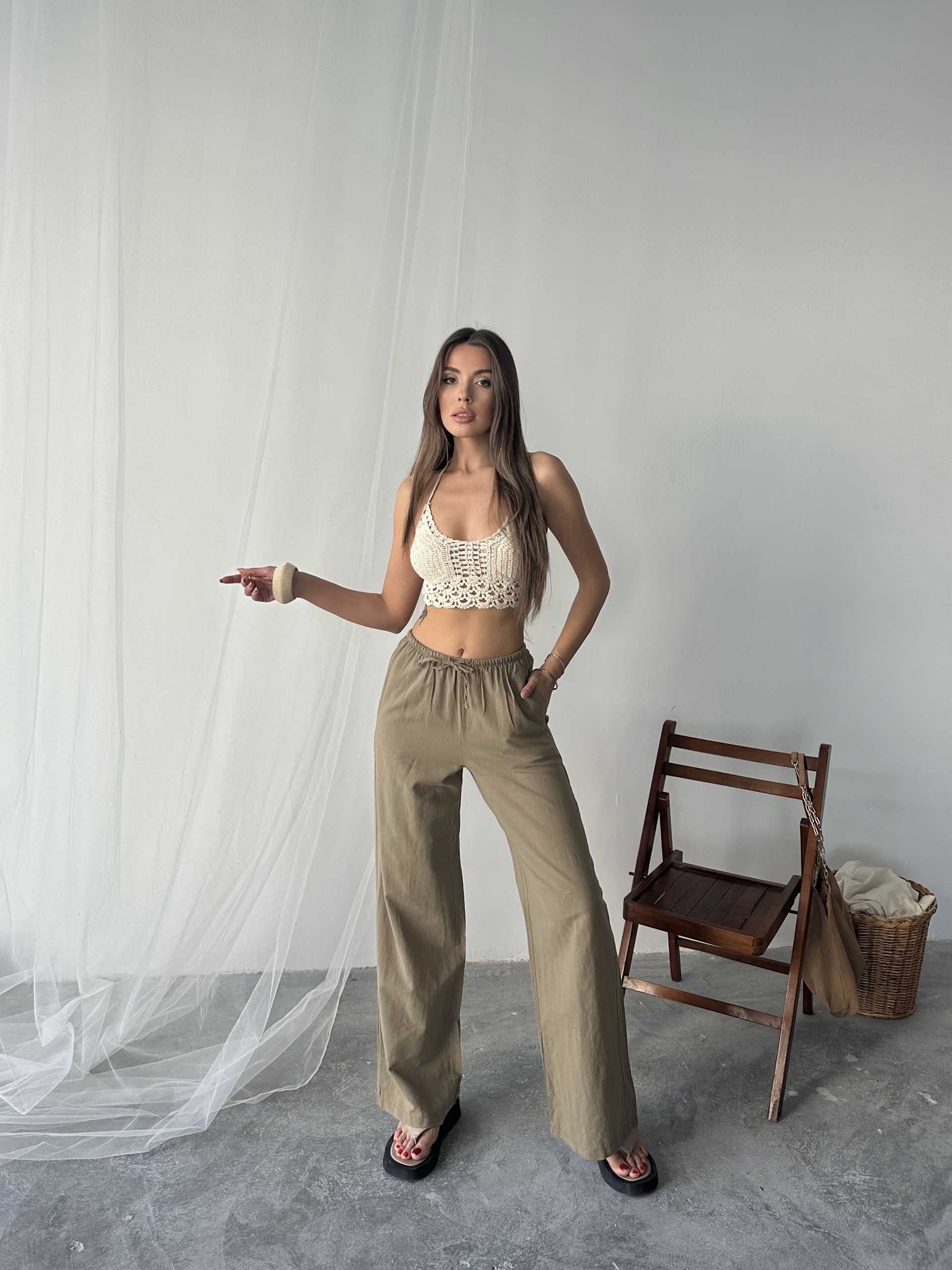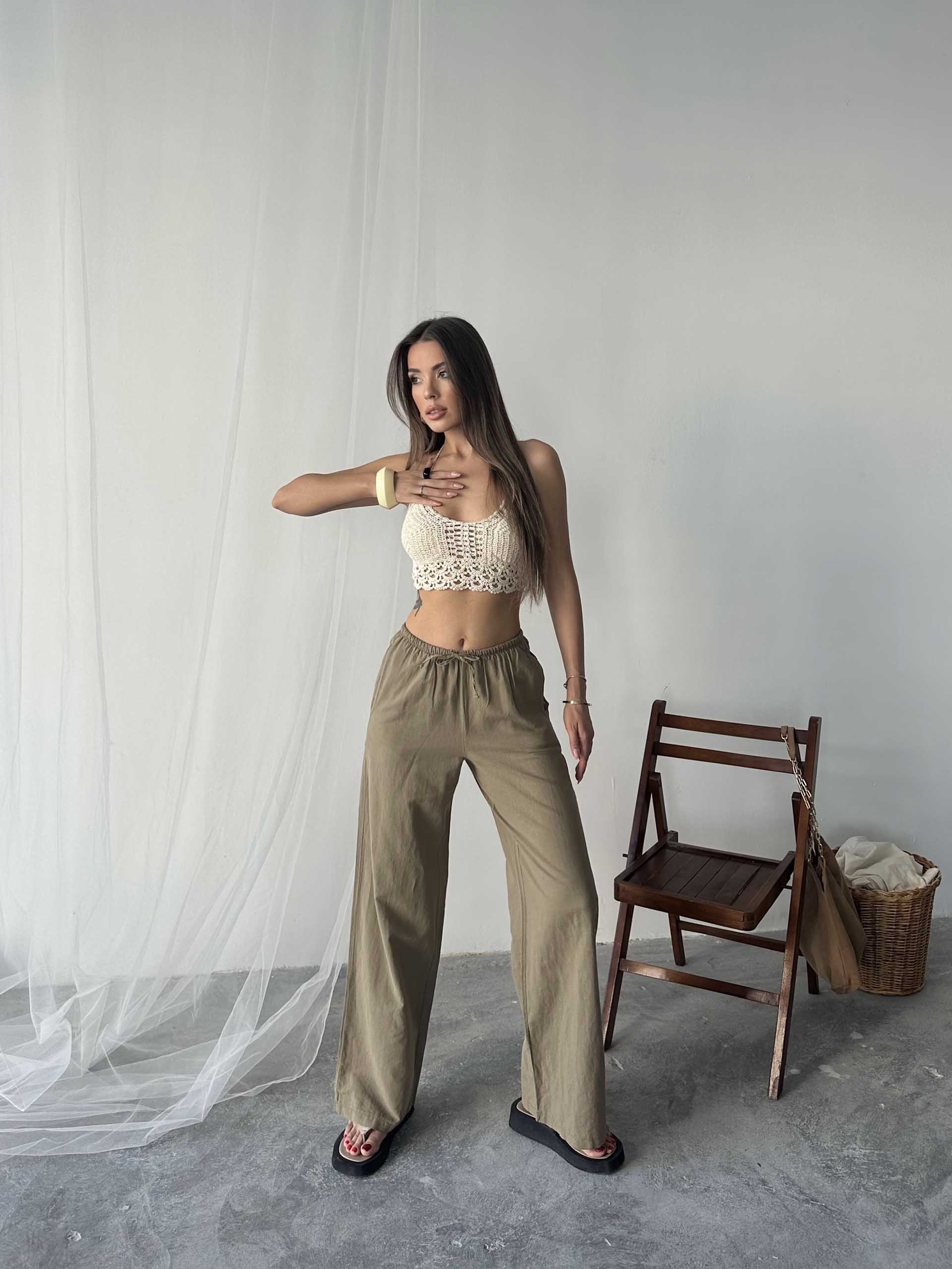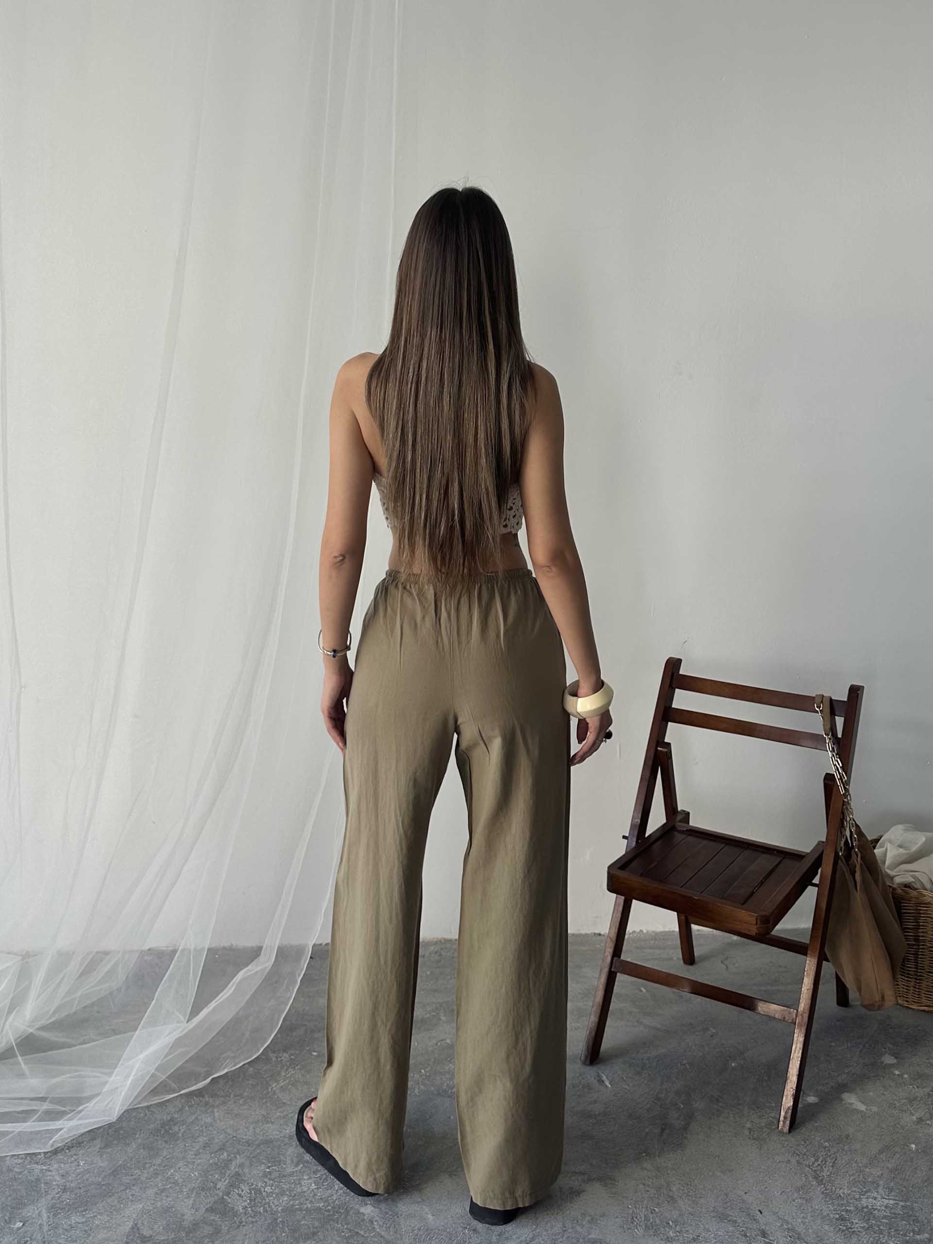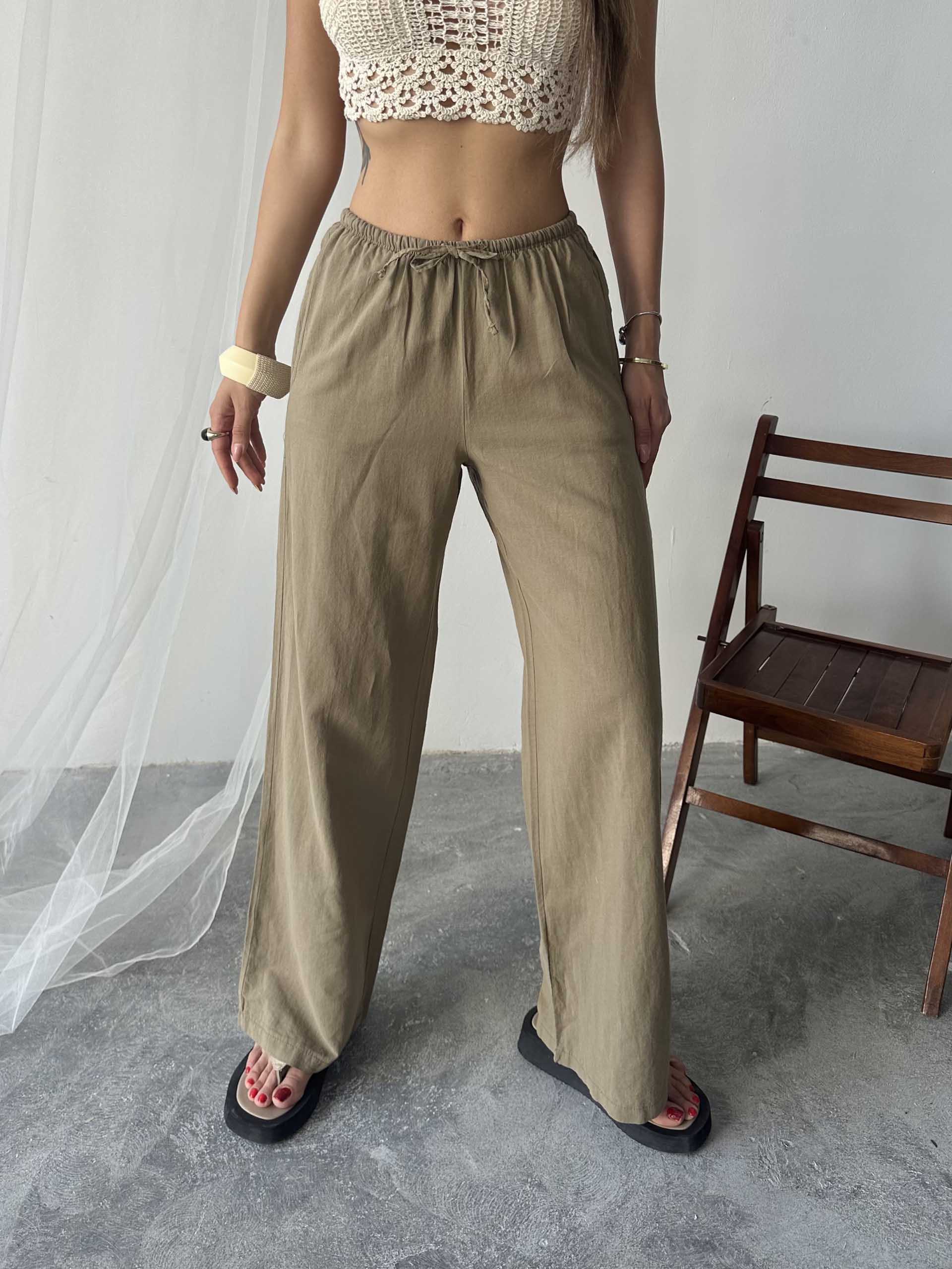 Nadia Keten Bel Kuşaklı Pantolon Beyaz Nadia Keten Bel Kuşaklı Pantolon Kahverengi