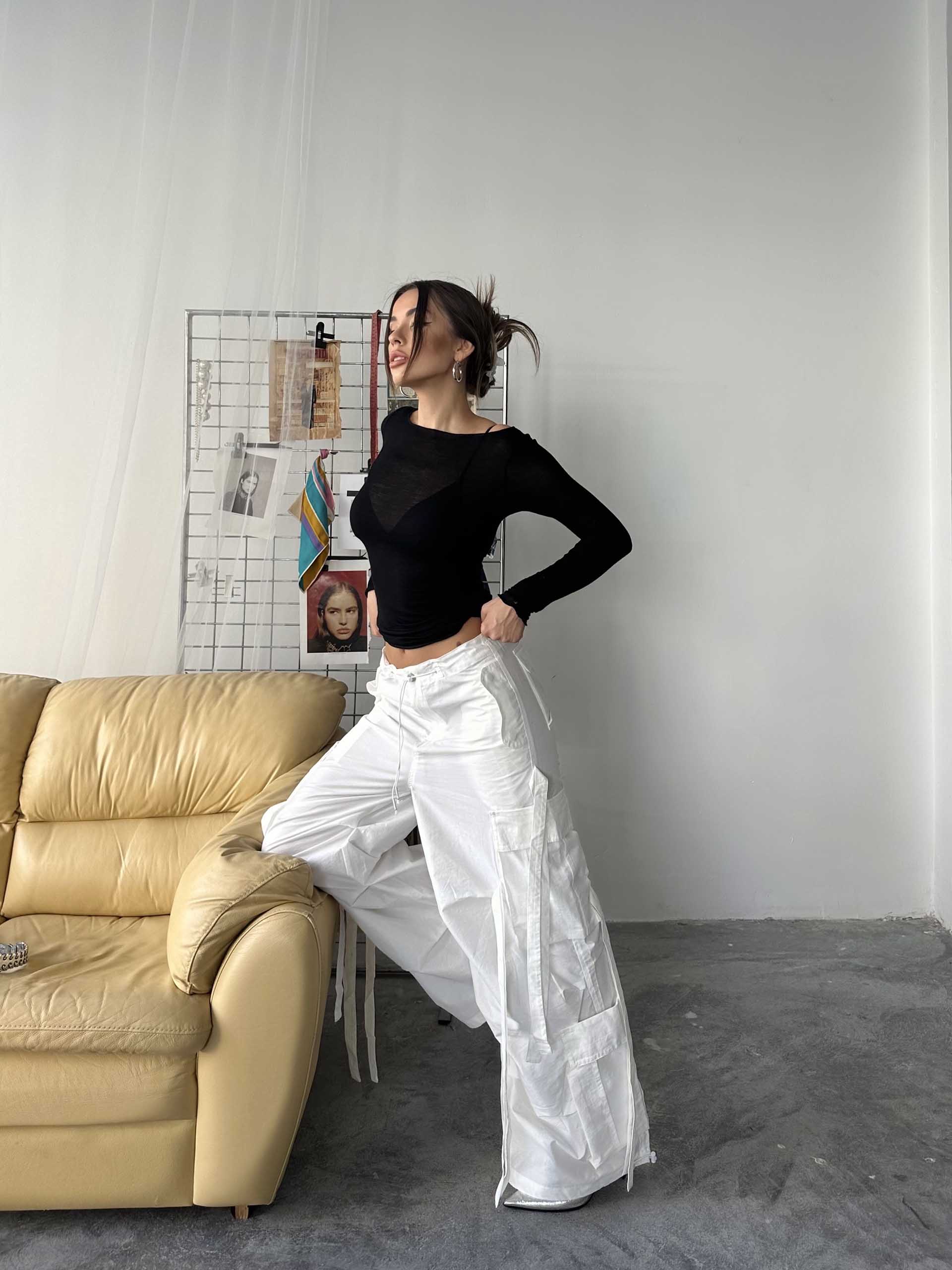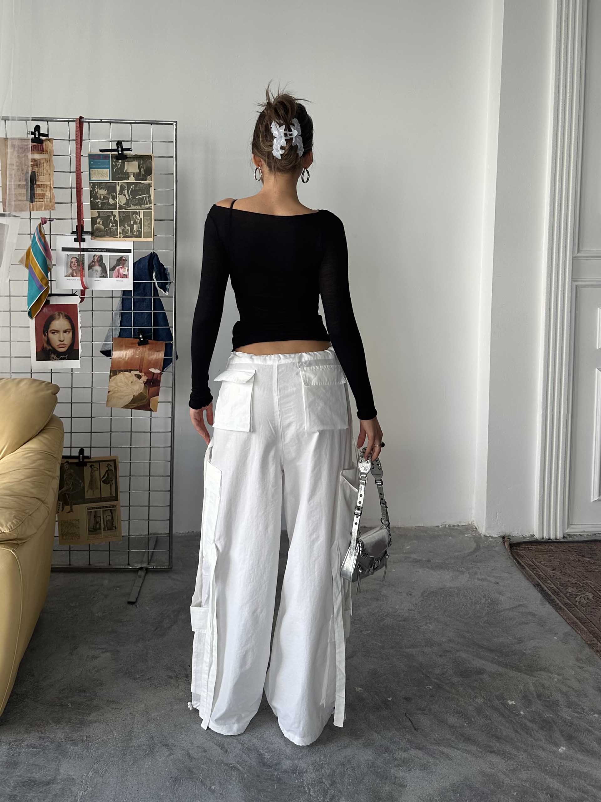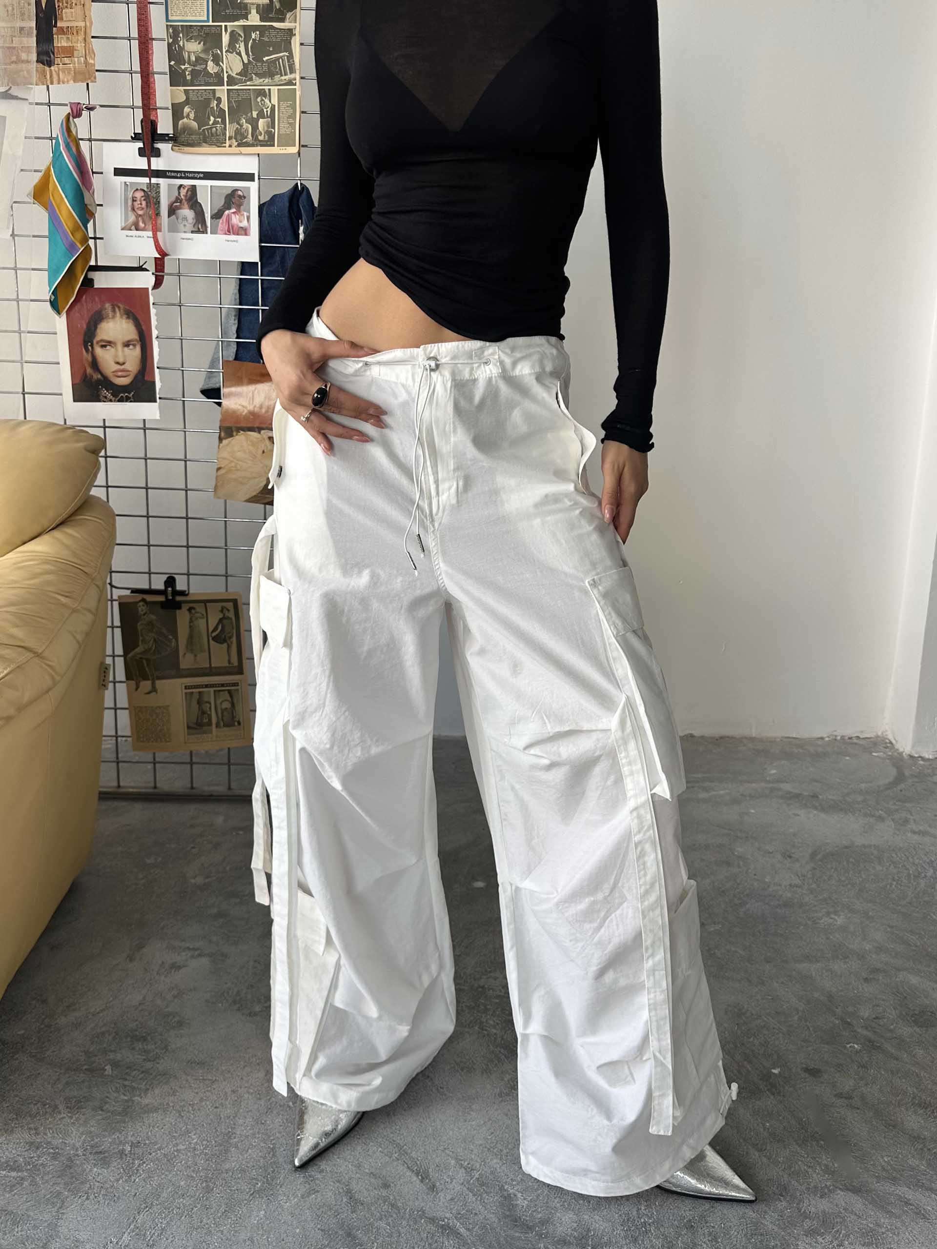 • Sandra Tasarım Alien Marka Kargo Pantolon Beyaz