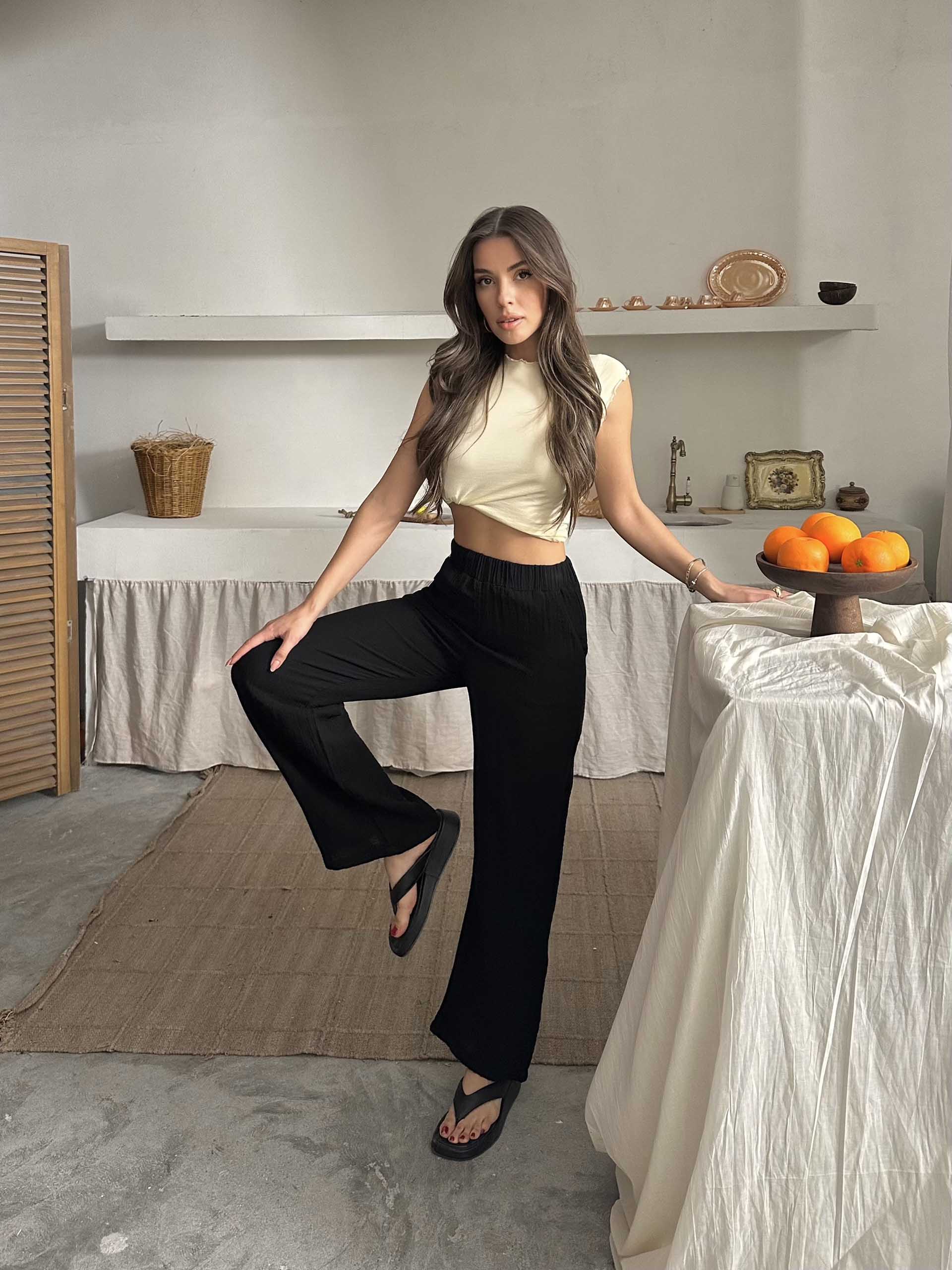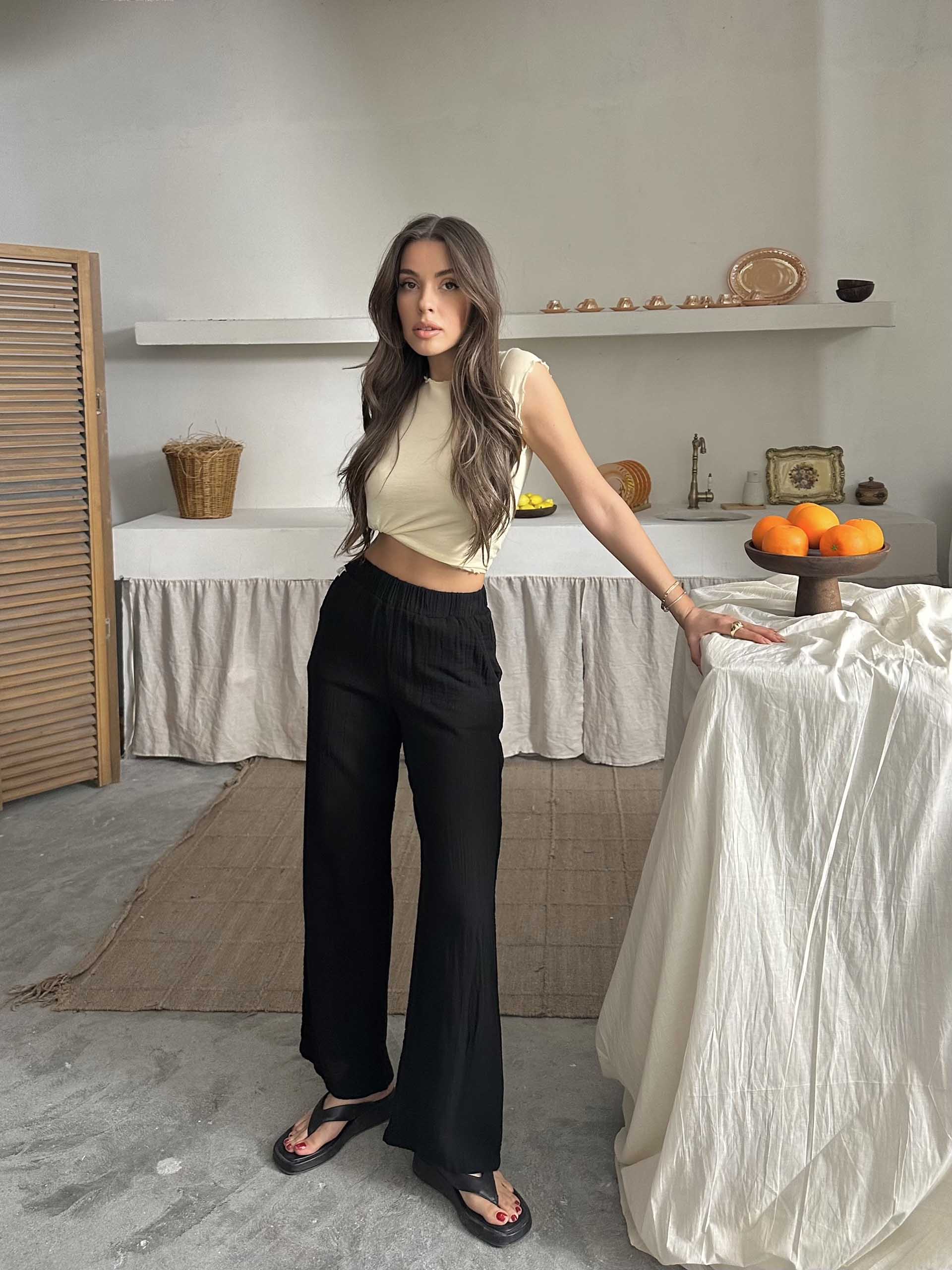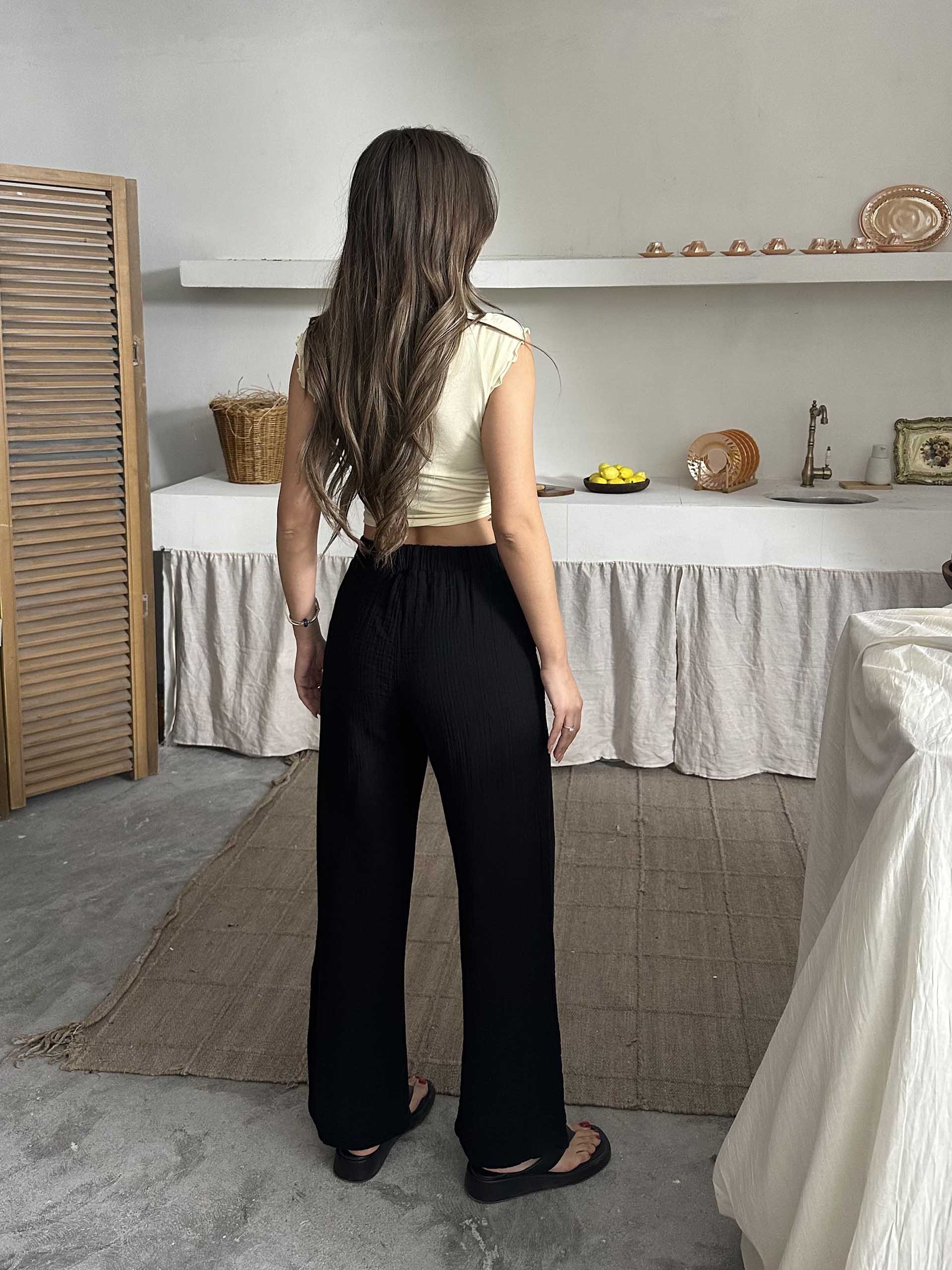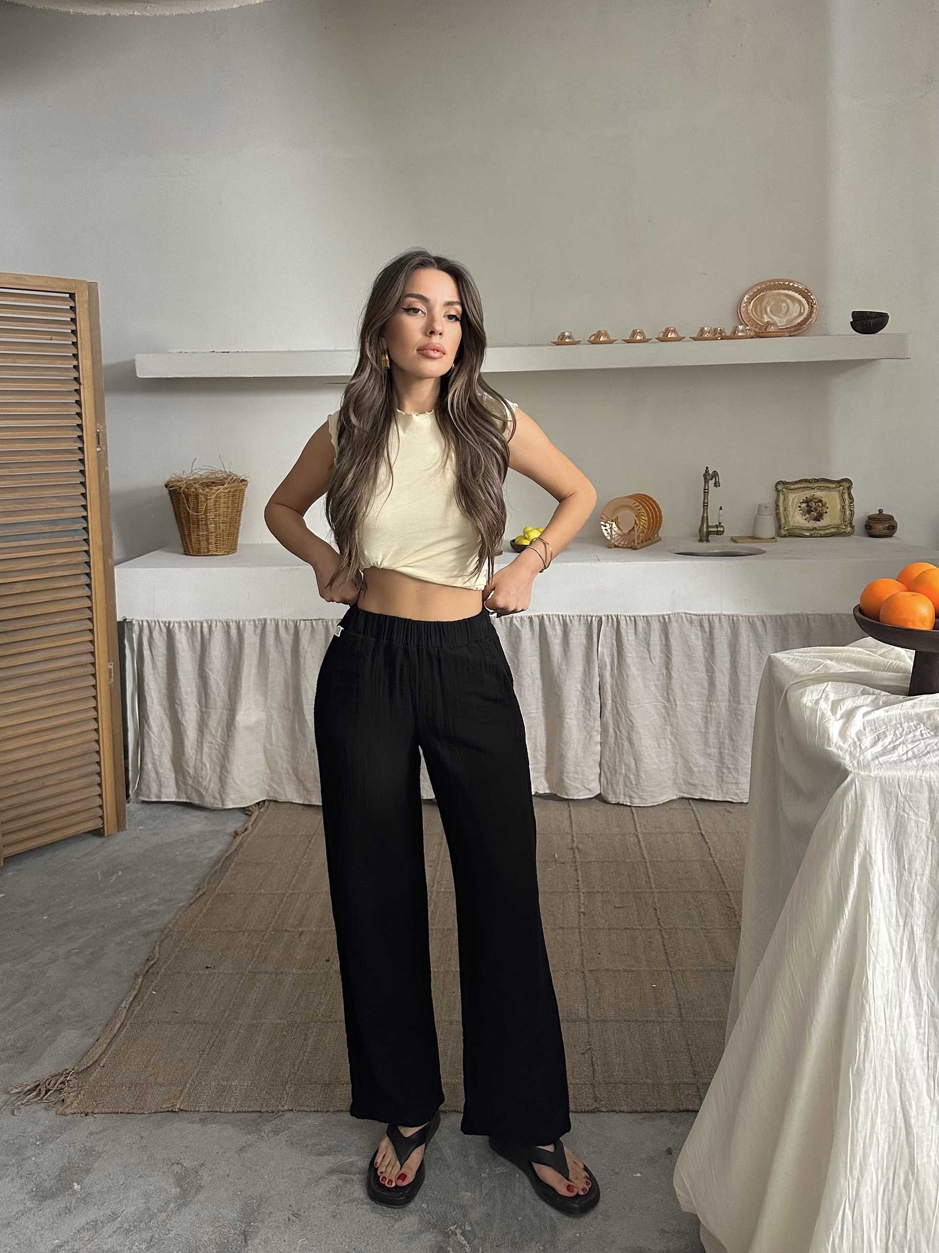 Talia Organik Müslin Kumaş Pantolon Siyah